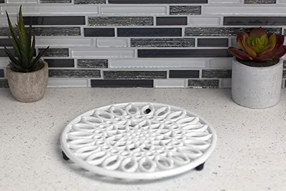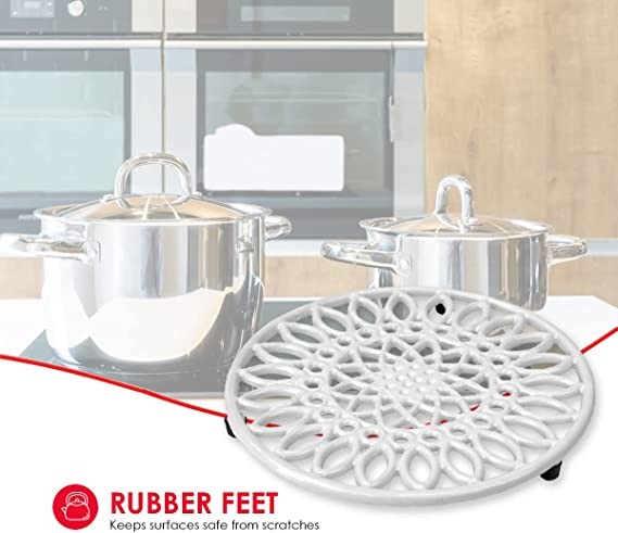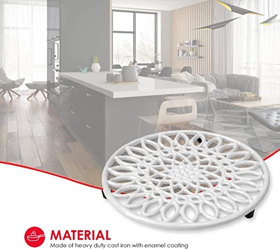 Elevated to keep hot dishes from directly touching the Table and countertop: the base is raised to ensure that no heat will have any contact with your home’s surfaces. Perfect to display on the counter, table, kitchen Island, and never worry about damage