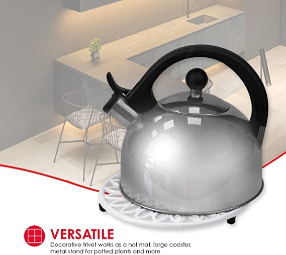 Perfect for keeping counters and tables free from scratches and heat: an elegant replacement for those old pot holders and towels, This trivet keeps your counter and dining table Safe from scorching hot serving dishes and meals.