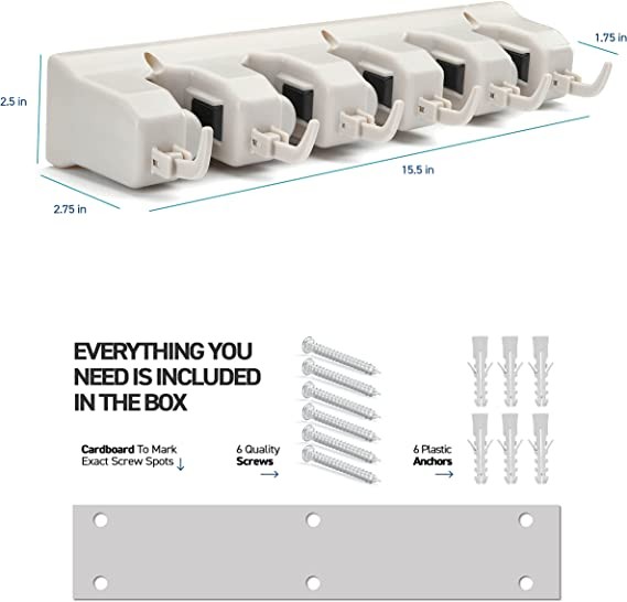Wall Mount Premium Tool Rack Holds Mop, Broom or Sports Equipment and Storage Tool Rack Storage and Organization Home Plastic Hanger for Closet Garage Management Shed Manager Basement Storage (High Quality) Lift Handle for Easy Release