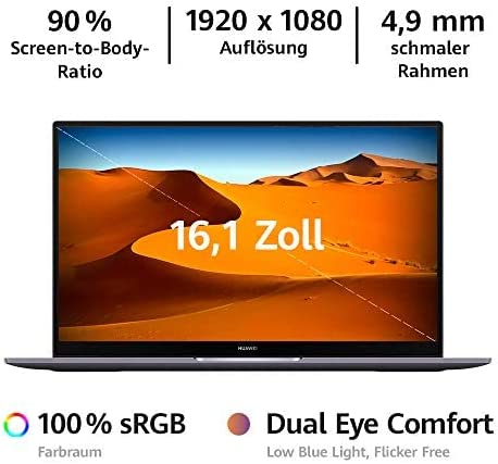 Huawei fullview eye comfort: the 16.1 inch huawei fullview display is impressive with an ultra-thin frame of 4.9 mm and a screen to case ratio of 90% - for unlimited visual impressions.