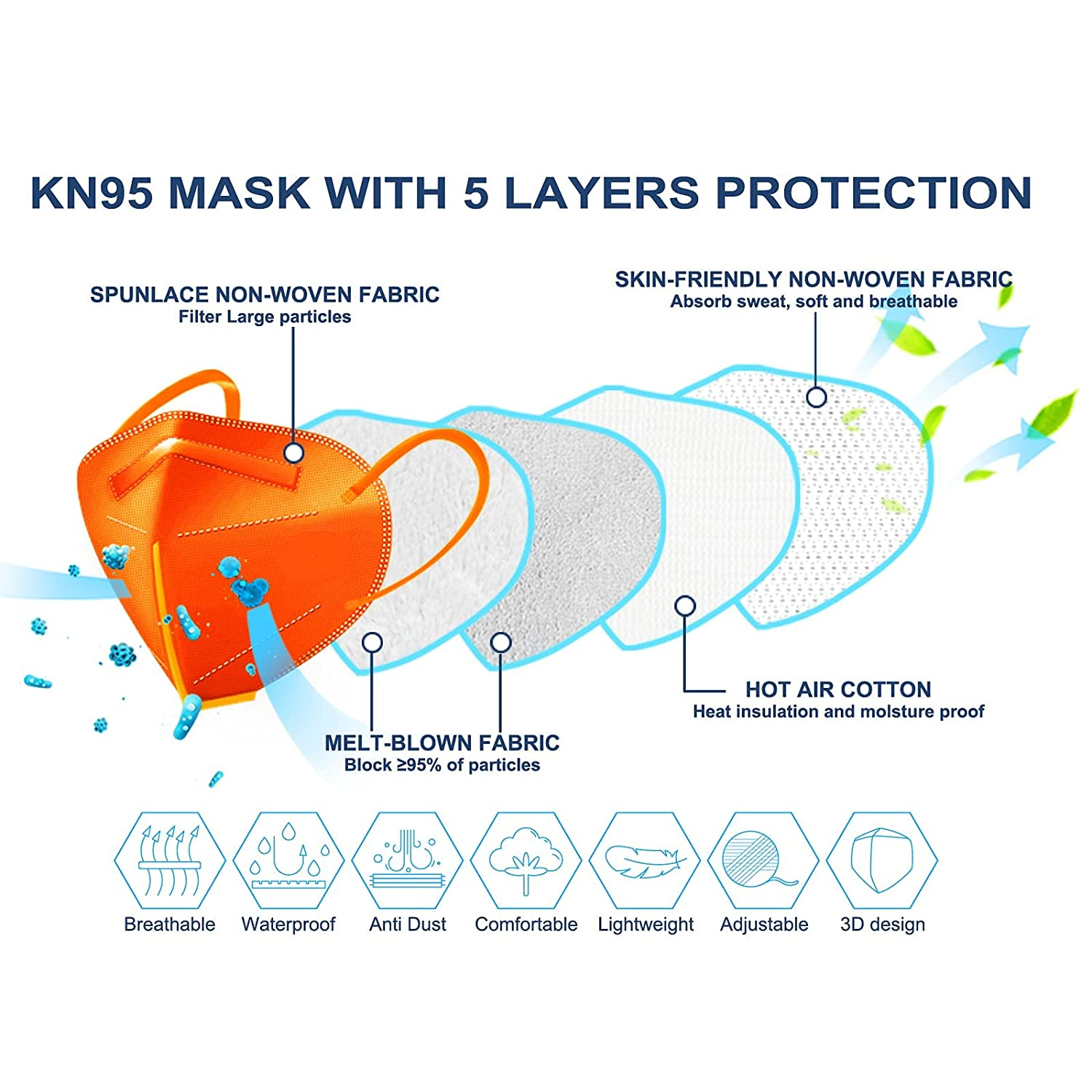 5-layer protection: this 5-layer mask is designed to provide more protection than a 3-layer disposable mask. Blocks more than 95% particles