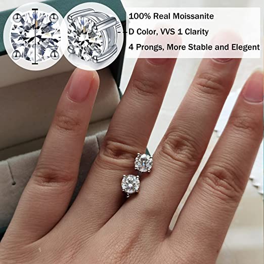 【100% Real Moissanite with More Sparkle】-The stud earrings for women is made of 100% REAL MOISSANITE in DEF color and VVS1 Clarity, which is as hard and shinny as natural diamond. It won't tarnish or discolor and it is more cost-effective than diamond. The stones are 5mm, 0.5 carat*2 =1 carat