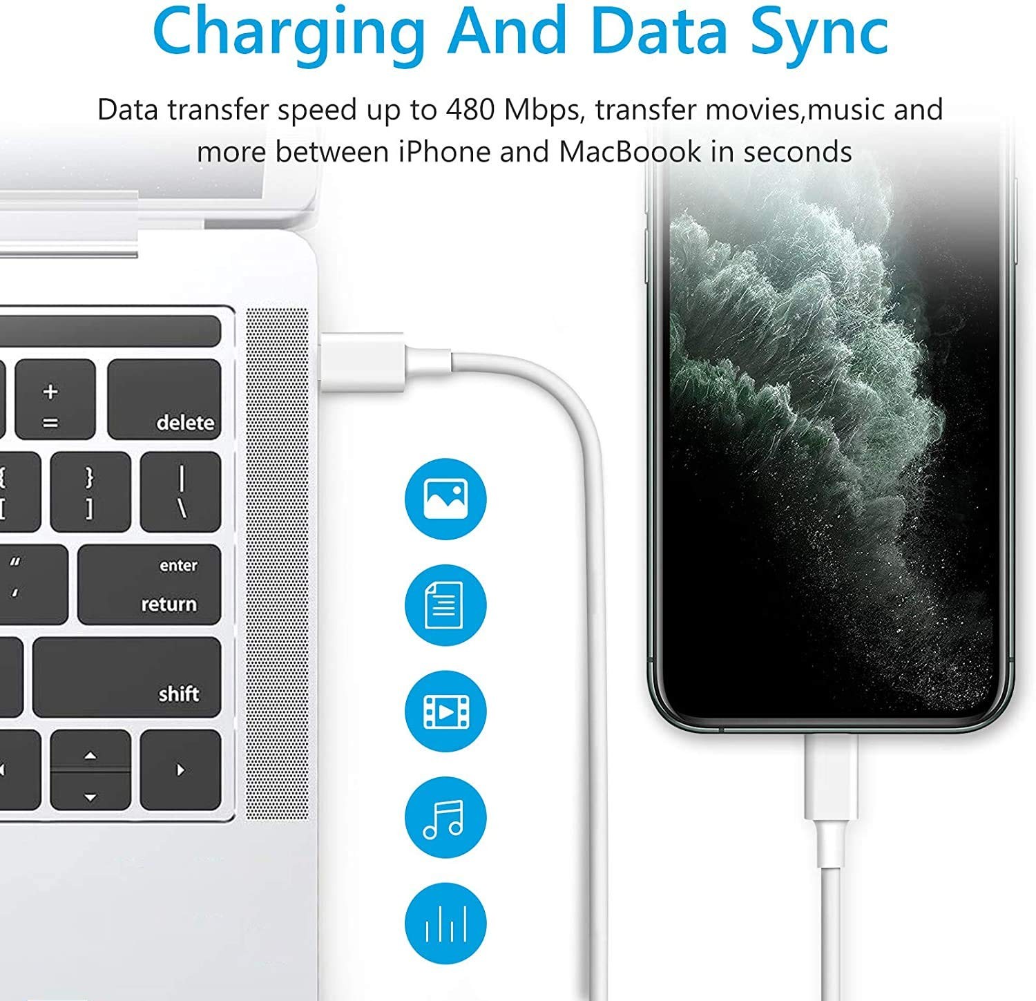 ?【2Pack Apple MFi Certified Lightning Cable】With the original MFi Chip, Built with latest C94 terminal and smart chip. Apple MFi licensed iPhone charging cable promises no warning message pops up. Ensures 100% high speed charge and you could connect your MacBook/Pro with iPhone/iPad/iPod directly and enjoy the 480 Mbps sync data transfer speed.