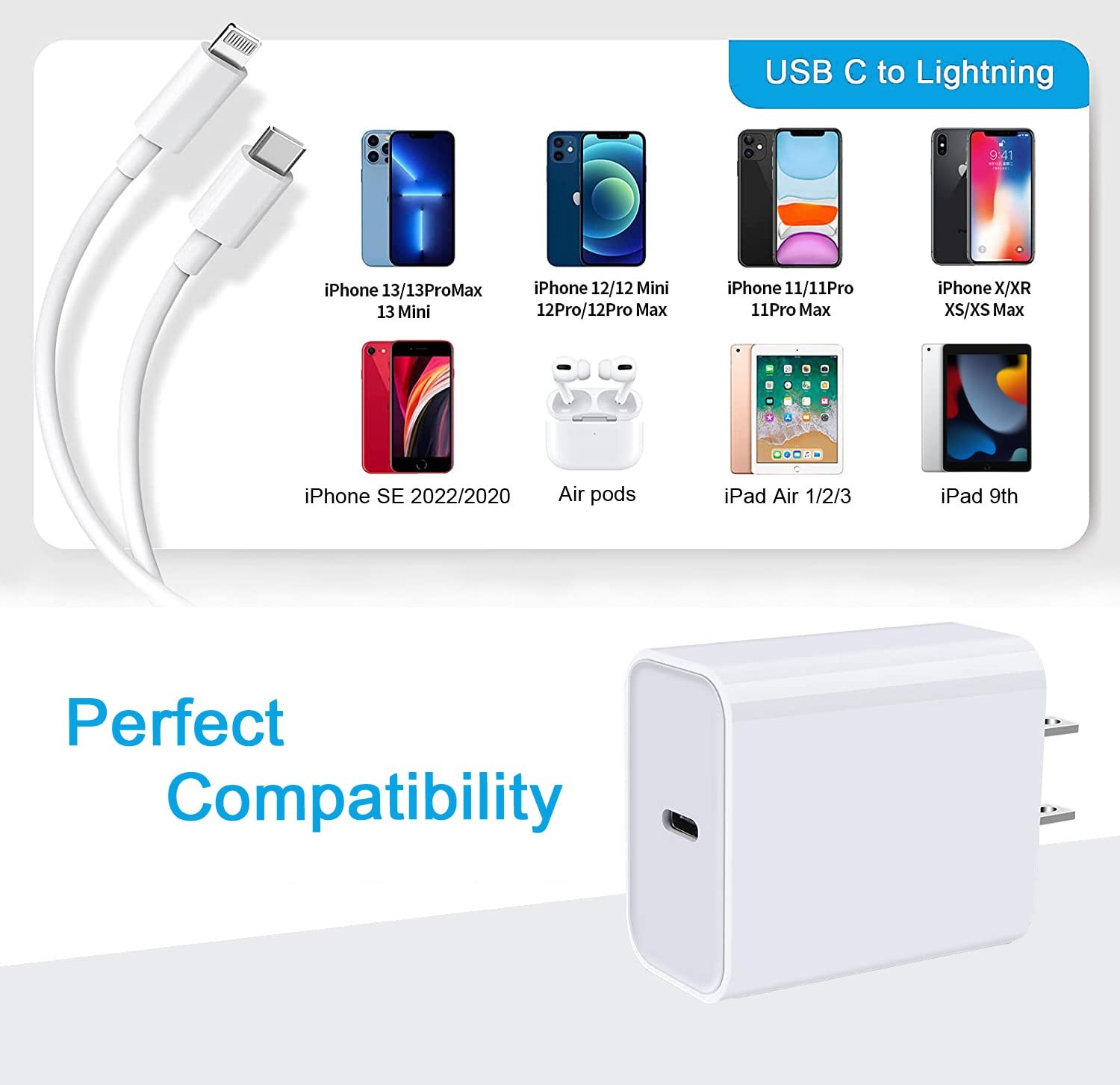 ?【20W PD Fast Charger for iPhone】 iPhone Fast Charger equipped with 2pack 20W PD USB Type C power delivery wall plug, PD 3.0 Quick-Charge USB C port provides Max 20W output power, charging your iPhone 12 up to 50% in just 30 minutes, saving over 1.5hrs for you.