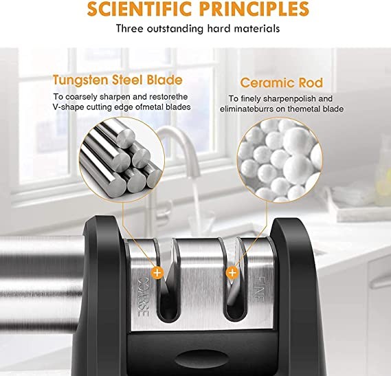 【Safety and High Quality First】: Our 2 high-quality sharpening grooves are made of super-hard tungsten steel and ceramic respectively, which are more high-quality and durable. Plus, designed with a non-slip cushioned base and ergonomic handle for added stability and grip.