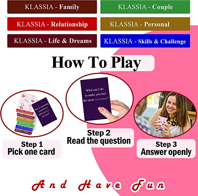 Relationship Card Game for Couples: Build relationships by asking romantic questions. Card design to play over and over again, pick a card, read the questions and start a conversation