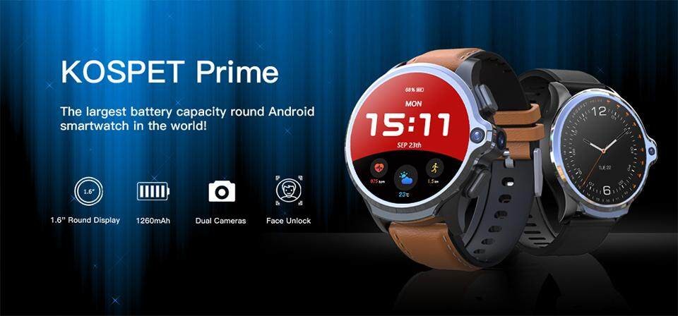 KOSPET Prime 4G Android Watch(3GB + 32GB, Dual Camera, 1260mAh Battery, 1.6")