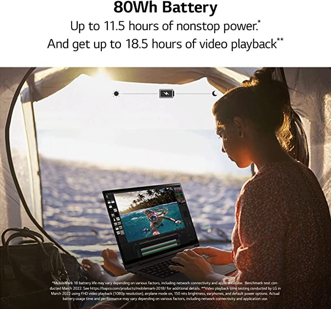 72 Wh Battery: Carry your hustle anywhere with up to 12.5 hours of nonstop power and get up to 19.5 hours of video playback, with a whopping 72 Wh battery.*