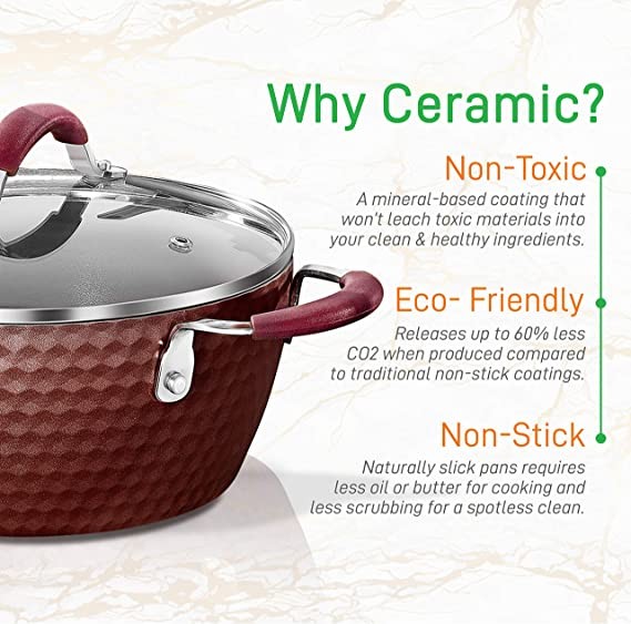 11-Piece Set: NutriChef offers an 11-piece nonstick cookware set that includes 1. 7-quart saucepan with lid, 3. 6-quart Dutch pot with lid, 2. 1-quart large skillet, 8-inch small skillet, soup ladle, pasta fork and shovel