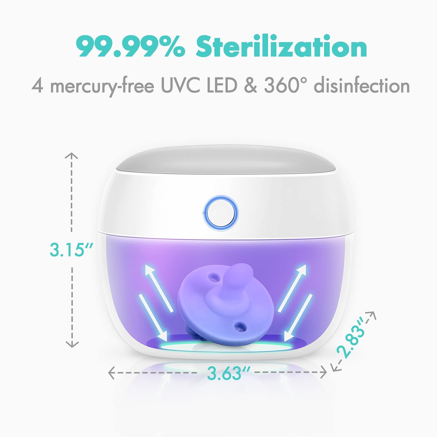 Sterilizes in 59 Seconds: Babies keep spitting out pacifiers at home or on the go! Sterilizes your baby’s pacifier with 4 ozone-free and mercury-free UVC LEDs and gives you peace of mind knowing his pacifier is germ-free in just 59s!