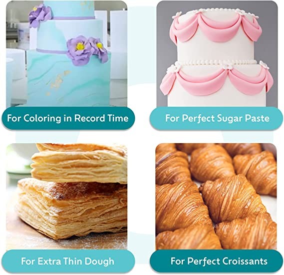 ULTRA THIN RIBBON - PROFESSIONAL PRECISION: Simply feed, crank and watch as your dough, fondant, icing, molded chocolate, thin slices of pastry or short slices of pastry flow into panes 0mm to 12mm thick ribbon - Cut down on the time to perfectly blend the food coloring into the sugar paste while getting perfect results.