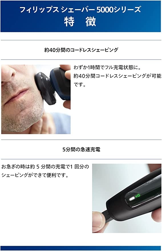 Wet and dry design. In addition to dry shaving, wet shaving can also be done in the shower with gel or foam. The 5-minute quick charge function allows you to shave once. [Excellent Amazon limited] color black