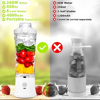 ?【Blend On The GO】Engineered with sports bottle cap & carry loop, this personal size travel blender come with a extra bottom cap, leather keychain handle and silicone straw, cup brush, 600ml large capacity, whole blender weights 1.4lbs, the portable sports bottle weights only 0.6 lbs, BPA free, Dishwasher Safe(without blender part).Perfect for indoor, outdoor, travel, sport or class, you can replace the bottom cap on after blending, enjoy your smoothies shakes anywhere anytime!