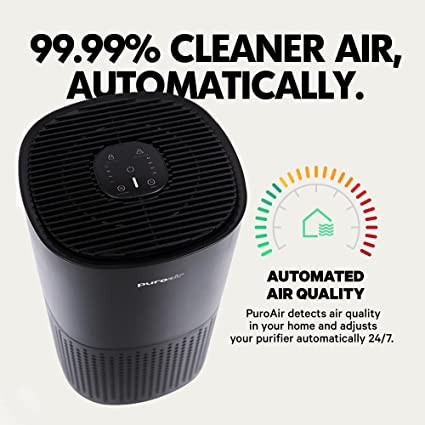 Automatically cleans the air: The smart particle sensor monitors air quality and adjusts to increase power when it detects polluted air. Perfect for any room. Relax and let PuroAir filter the air in your home to improve your allergies, asthma and sleep quality. Includes timer, fan speed, sleep mode, filter change indicator light, and child lock, perfect for kids and pets.