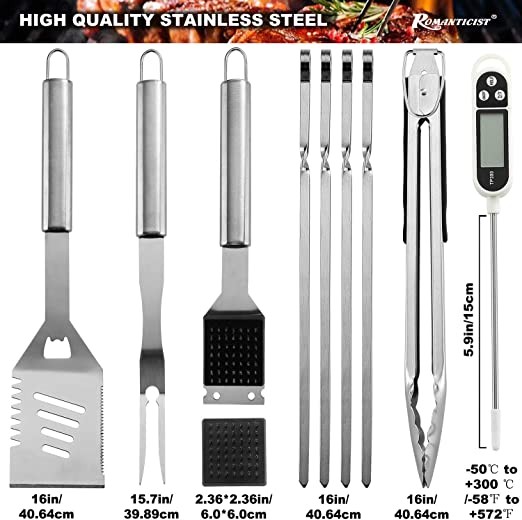 ROMANTICIST 40-Piece Grill Set with Thermometer and Meat Injector, Heavy Duty Grill Utensils, Stainless Steel BBQ Tool Set, Grill Accessories with Storage Bag, Gift for Men on Farther’s Day Christams