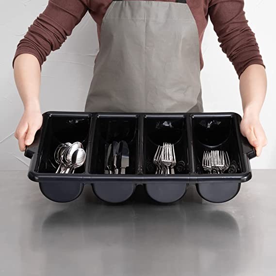 BUILT-IN HANDLES: Equipped with two built-in handles, this plastic cutlery box can be quickly transported wherever you need to use it. Great for restaurants or cafes!