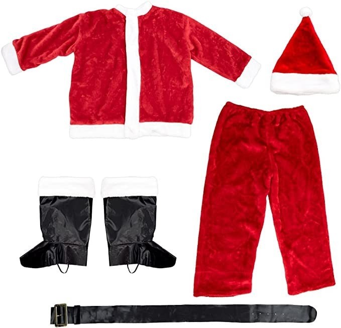 Santa Claus Set Christmas Costume - Red Coat, Hat, Pants, Belt and Boots Top