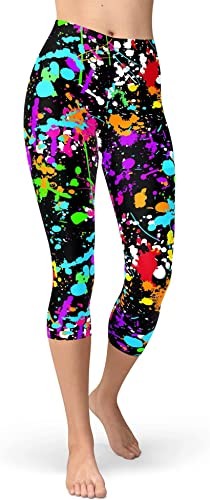 High quality single-sided 3D printing: 80s leggings, colorful mesh design repeating patterns, messy art ink spots, brush drawings, bright graffiti; Does not fade