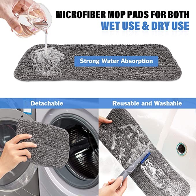 【Washable Microfiber Pads】Three reusable mop cleaning pads for you to replace, soft, absorbent, durable and reusable, more economical than disposable cleaning pads. Extend the life of your spray mop and save you money. Finally, it's also environmentally friendly since you have more control with the manual spray handle.