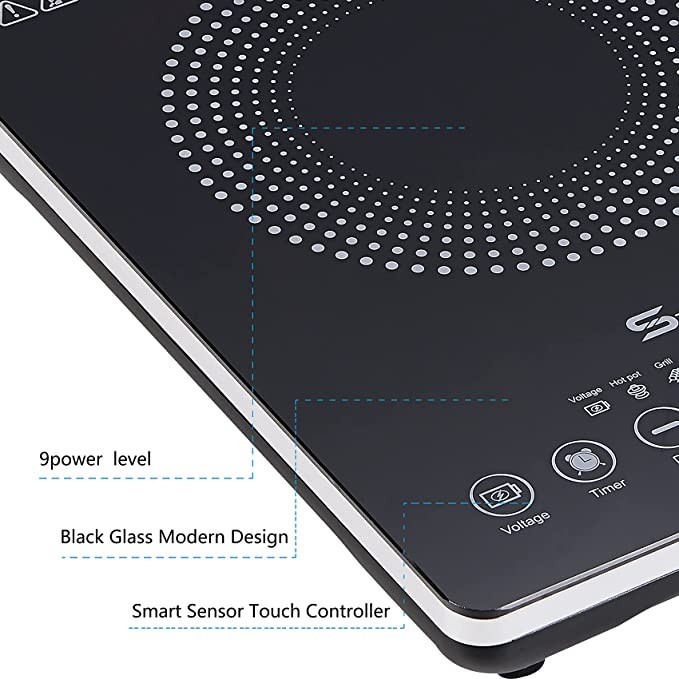 【LED Touch Screen】Touch the electric burner stove panel slightly to adjust the temperature, power, turn on set timer. The surface of this cooktop hot plate is made of Black Crystal Plate. It is scratch-resistant, wear-resistant, high temperature resistant and also easy to clean.