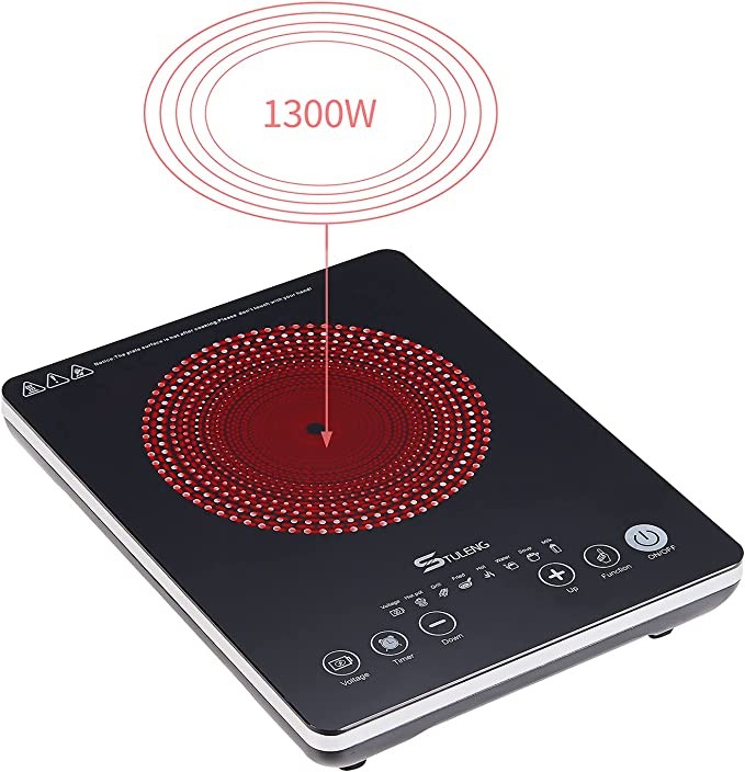 【High Power】This cooktop burner can quickly choose your desired power from 1300w; levels of power to meet your various cooking needs; simmer, deep fry, boil, sear, steam, slow cook and grill with ease. Low noise and energy saving.