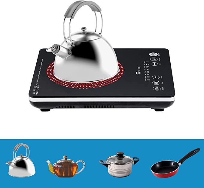 【Ultra Thin& Lightweight】This small, portable hot plate is just 2.4" tall and 5 lbs for easy handling and storage. Great for all kitchen countertops, apartments, camping, RVs, travel and parties. 5 ft cord.