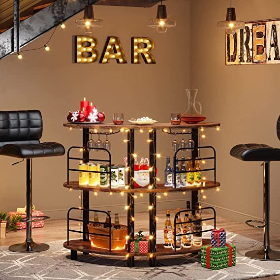 Entertainment Bar for Any Occasion: This 3 tier wine storage bar is a good choice for home entertainment. Rustic vintage style and curved deign suitable for a variety of decoration styles, it will add elegance to your dining room or living room, and could be used in more places for extra storage