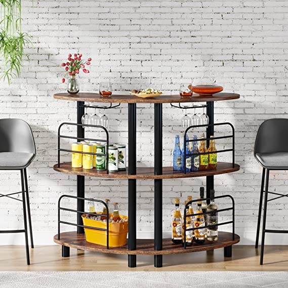 Large Open Storage Space: This 3-tier liquor bar unit with curved design and 2 large shelves offer ample space to store items, 4 front guard rails keep items from accidental spill. It’s suitable for displaying wine and wine accessories, meeting your storage needs
