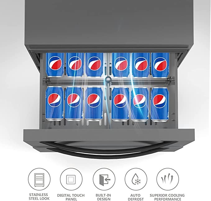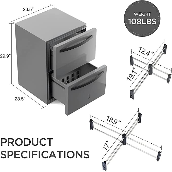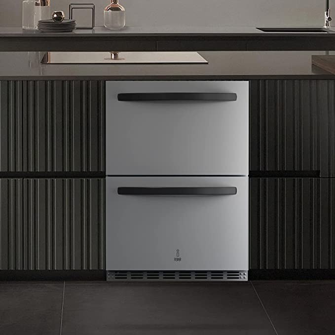 Under Counter Refrigerator for Home Use, Indoor and Outdoor Double Drawer Under counter Fridge in Stainless Steel, ICEJUNGLE 24'' Built-in/Freestanding Beverage Fridge Refrigerator and Commercial Use