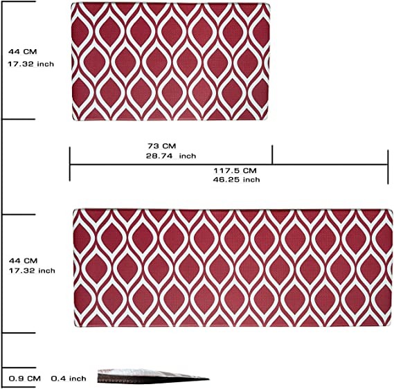 Kitchen Mat set of 2: This kitchen rugs and mats measure 17.32*28.74 and 17.32*46.25 inches,The thickness of kitchen rug is 0.3 inch (8mm).