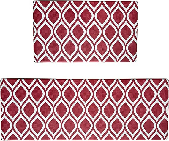 UPHTEH Anti Fatigue Kitchen Mats for Floor 2 Piece Set,17.32*28.74 and 17.32*46.25,Non Slip Waterproof Kitchen Mats and Rugs Ergonomic Comfort Mat for Home,Office,Laundry Room (red)
