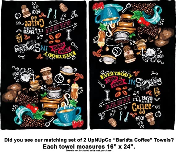 UpNUpCo Artistic and Colorful Kitchen Rugs Kitchen Mats for Floor Non Slip Kitchen Rugs and Mats Kitchen Mat Set Farmhouse Kitchen Rugs - Barista Coffee House Chalk Art -2 Pieces - 30"x17" + 47”x17
