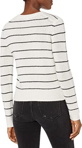 The thin striped sweater, indispensable at any time of the year, is made of extremely soft cashmere.