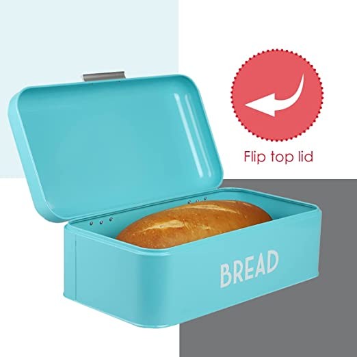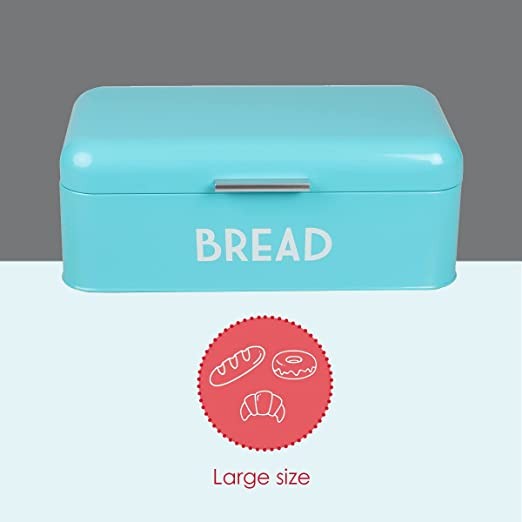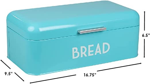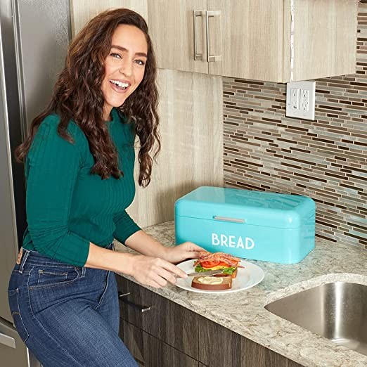 MODERN AND VINTAGE COUNTER STORAGE SPACE WHILE TAKES MINIMAL ROOM: Bring classic yet modern appeal to your kitchen space with our bread box. The turquoise color and vintage aesthetic of our bread organizer will help elevate your kitchen countertop into a chic one while taking up little space on your busy countertop