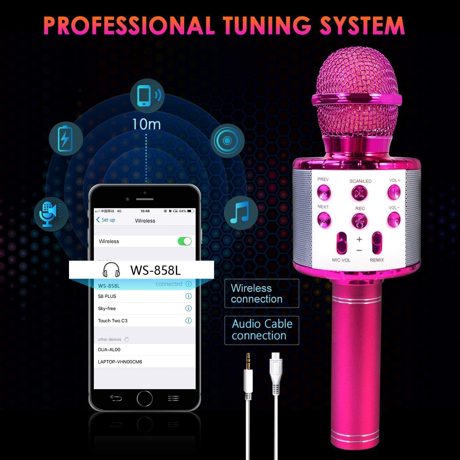 * microphone for karaoke 4 in 1, portable handheld wireless microphone can be used as microphone, dynamics, dynamics and dictaphone. Mini family KTV plays music and sings at any time.