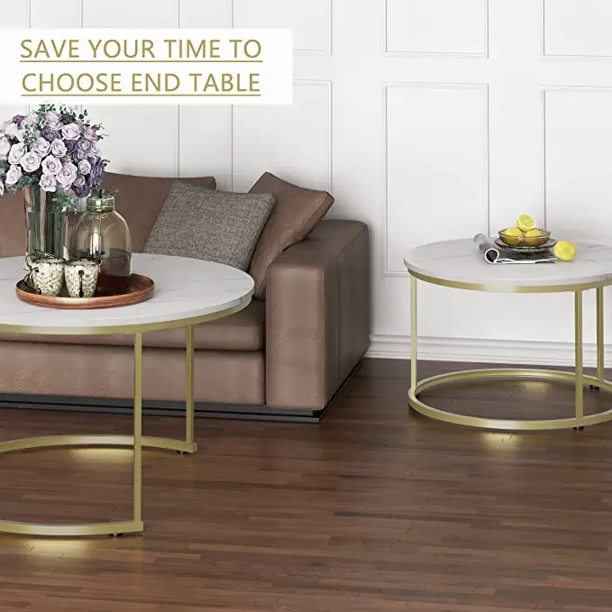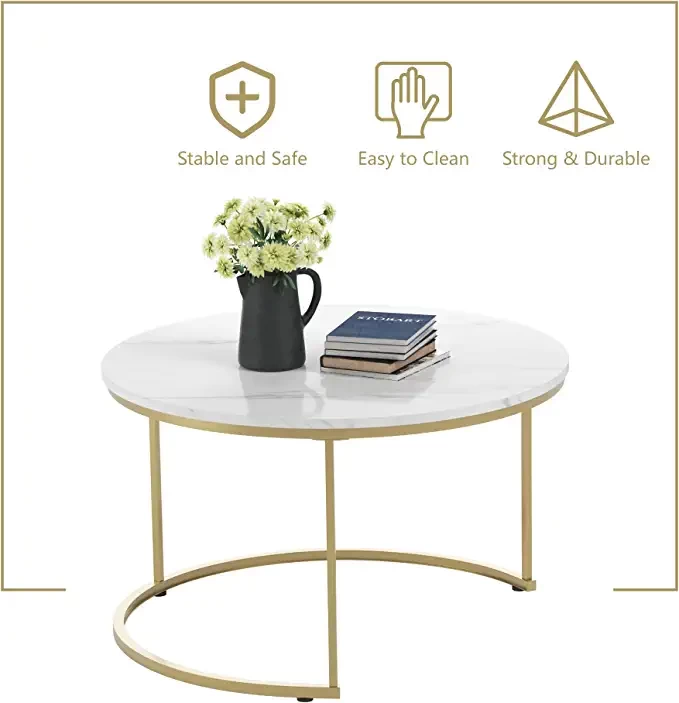 Modern and elegant appearance, elegant white round table design (imitation of marble veneer), smooth golden legs, can be combined with any living room furniture to make the house modern and stylish.